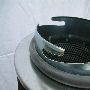 Filterpatrone mit einem Blechring Ø325 und Bajonettring oben.